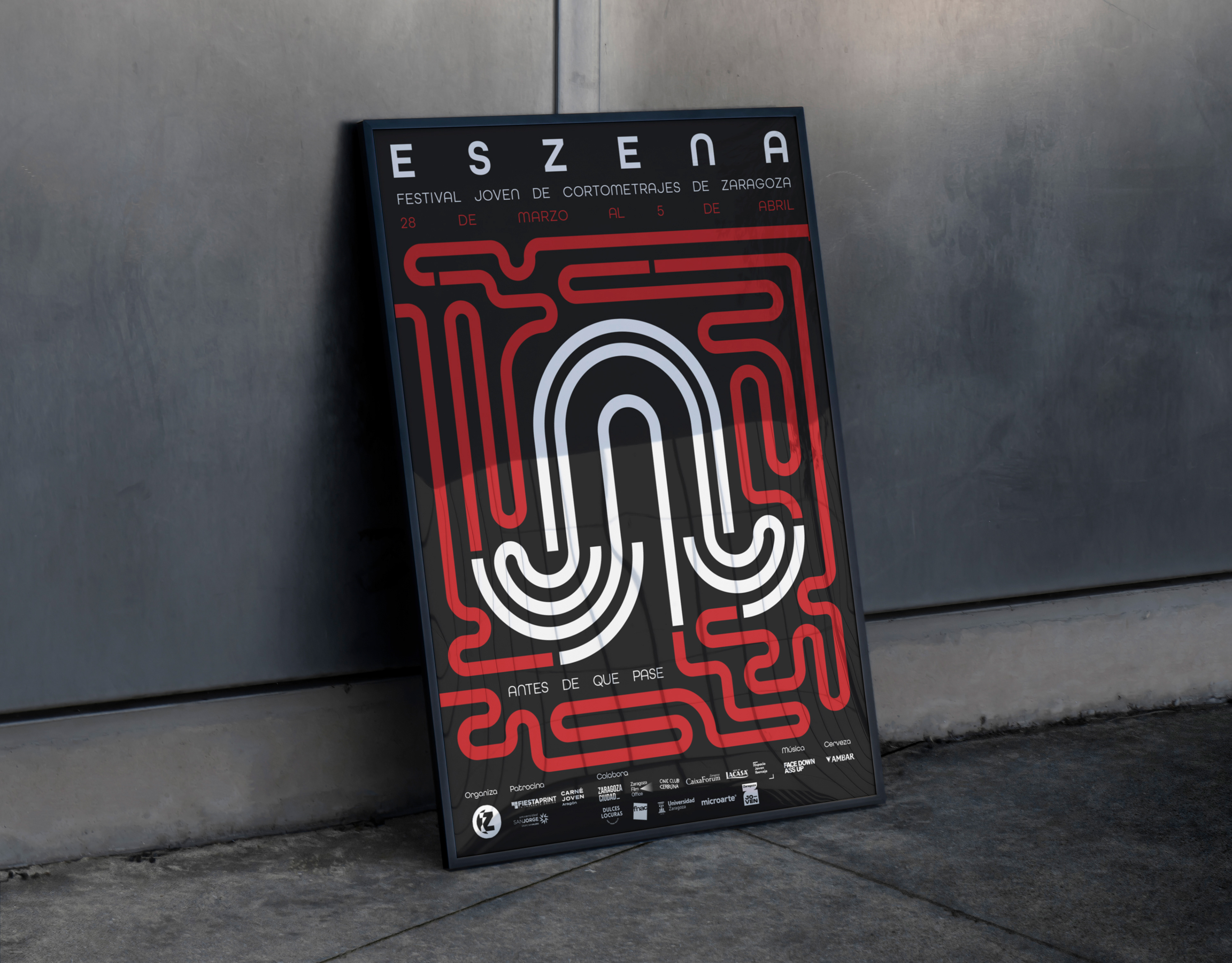 Visual identity for ESZENA, a short-film festival spotlighting emerging talent in Spain’s Aragón region.