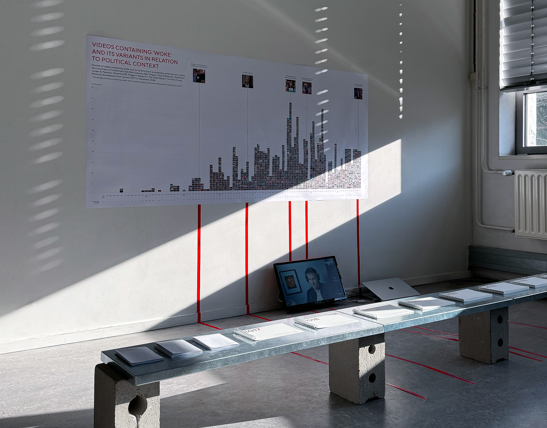 Installation exploring how the Intellectual Dark Web uses strategic appropriation on YouTube to spread right-wing ideology.