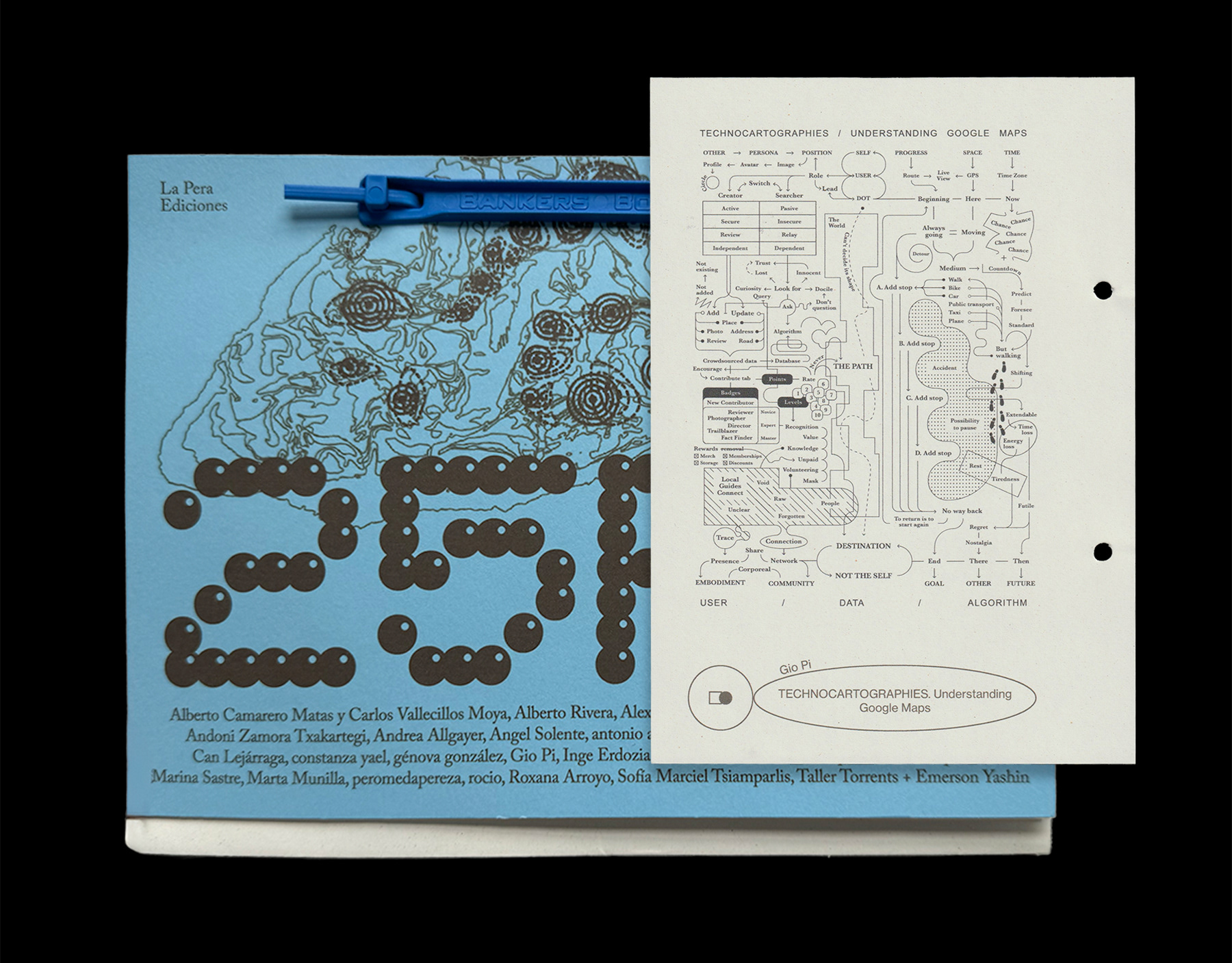 Diagram examining how we are intertwined with Google Maps, published by La Pera Ediciones.