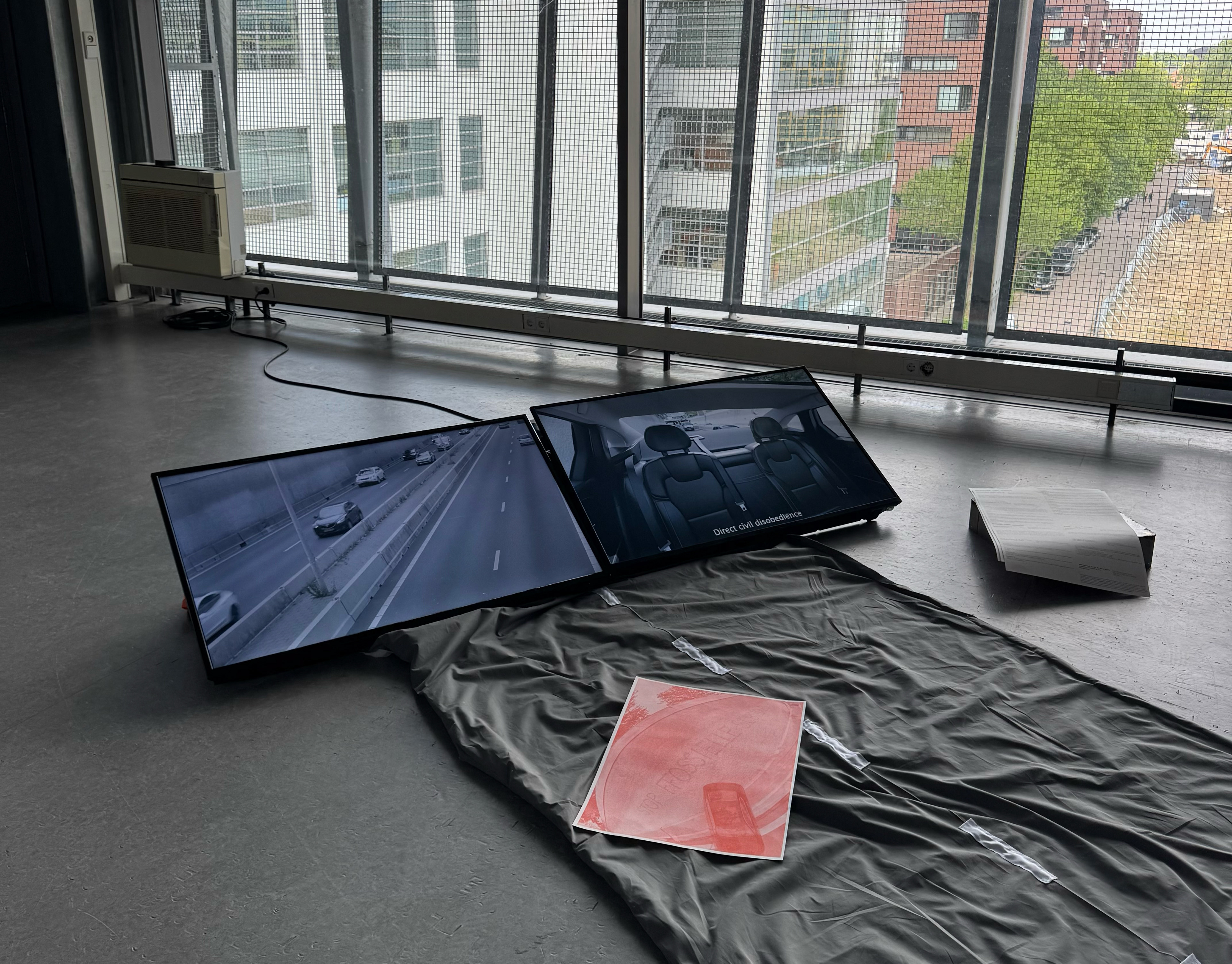 Multimedia installation on roadblock protests in the Netherlands.