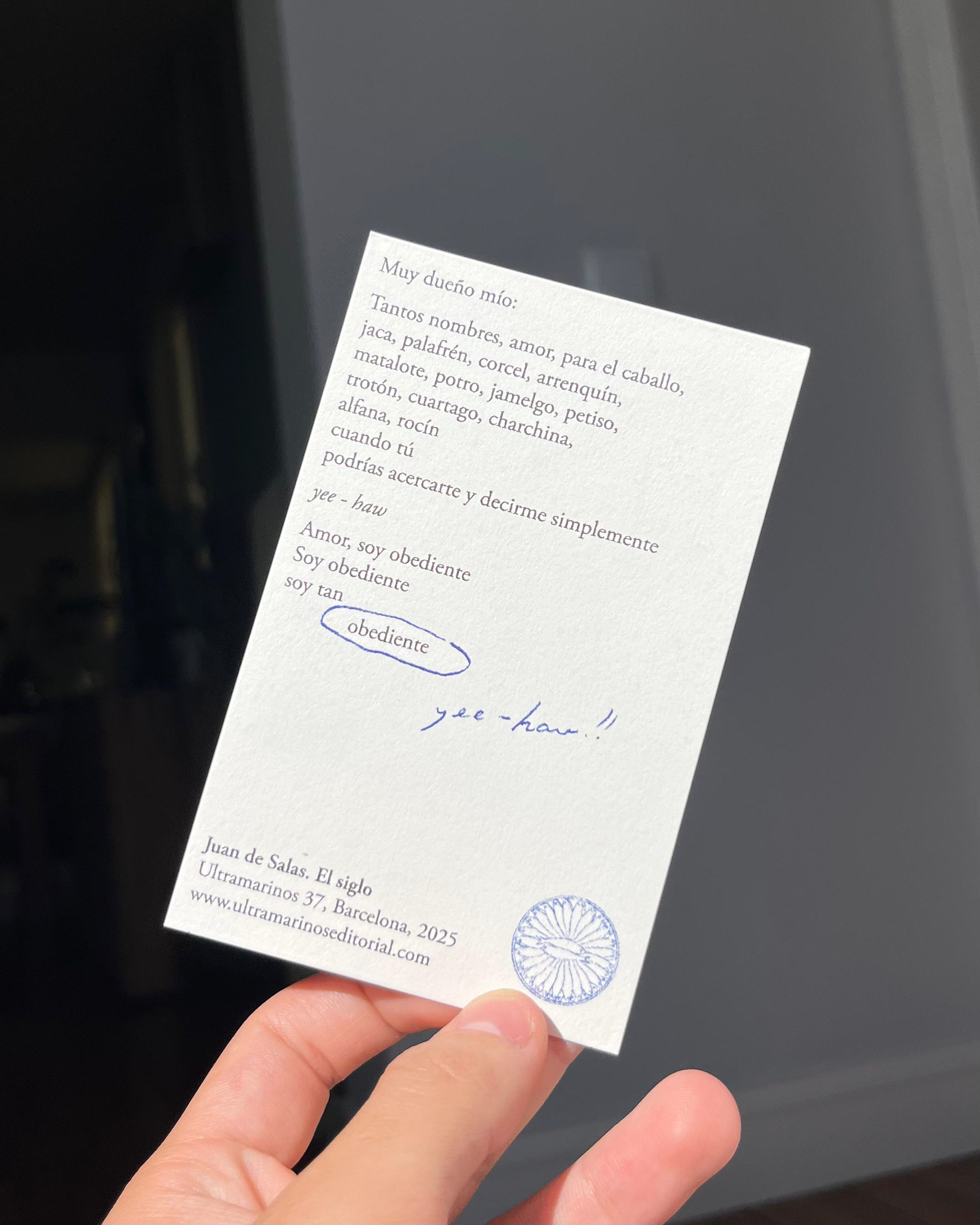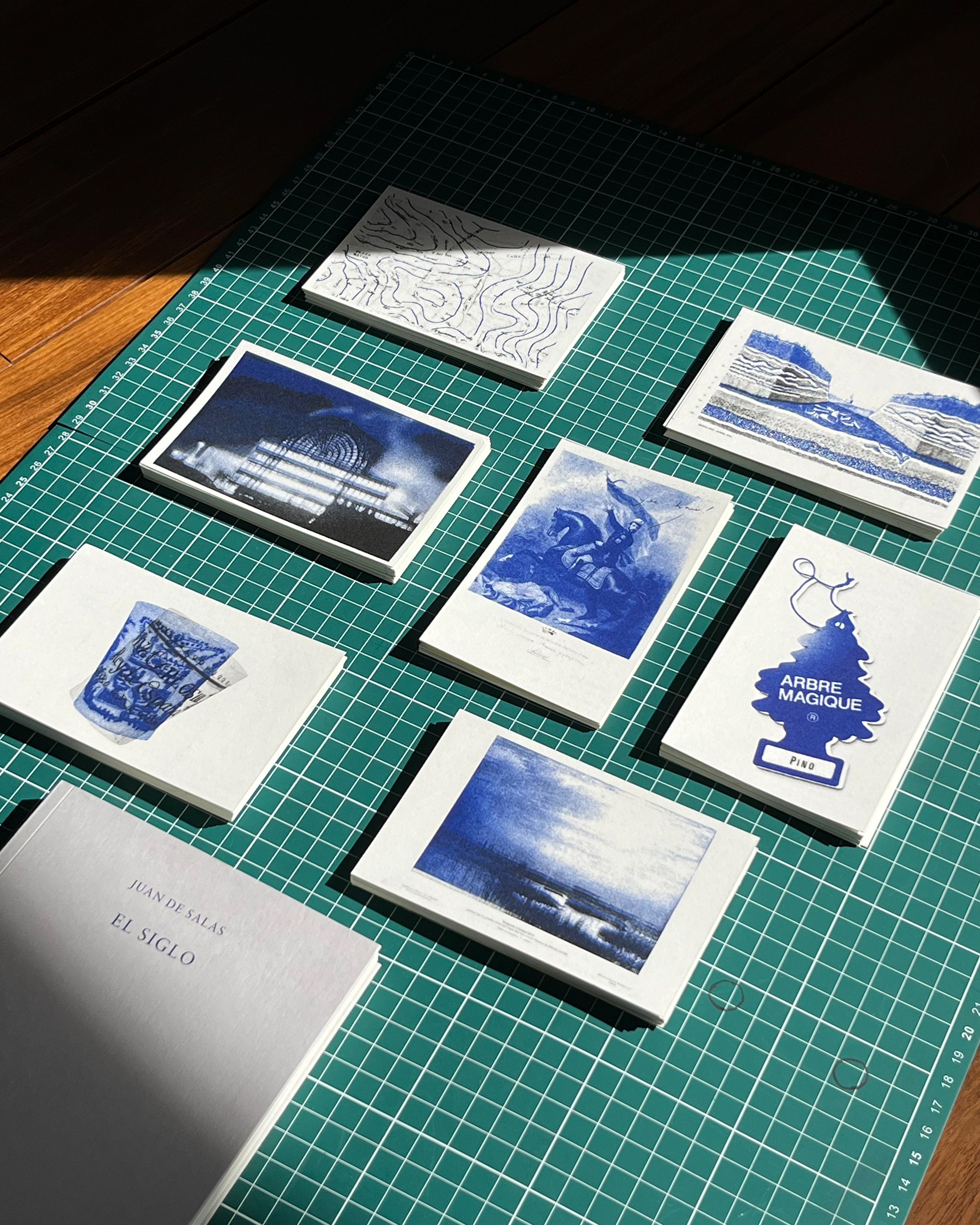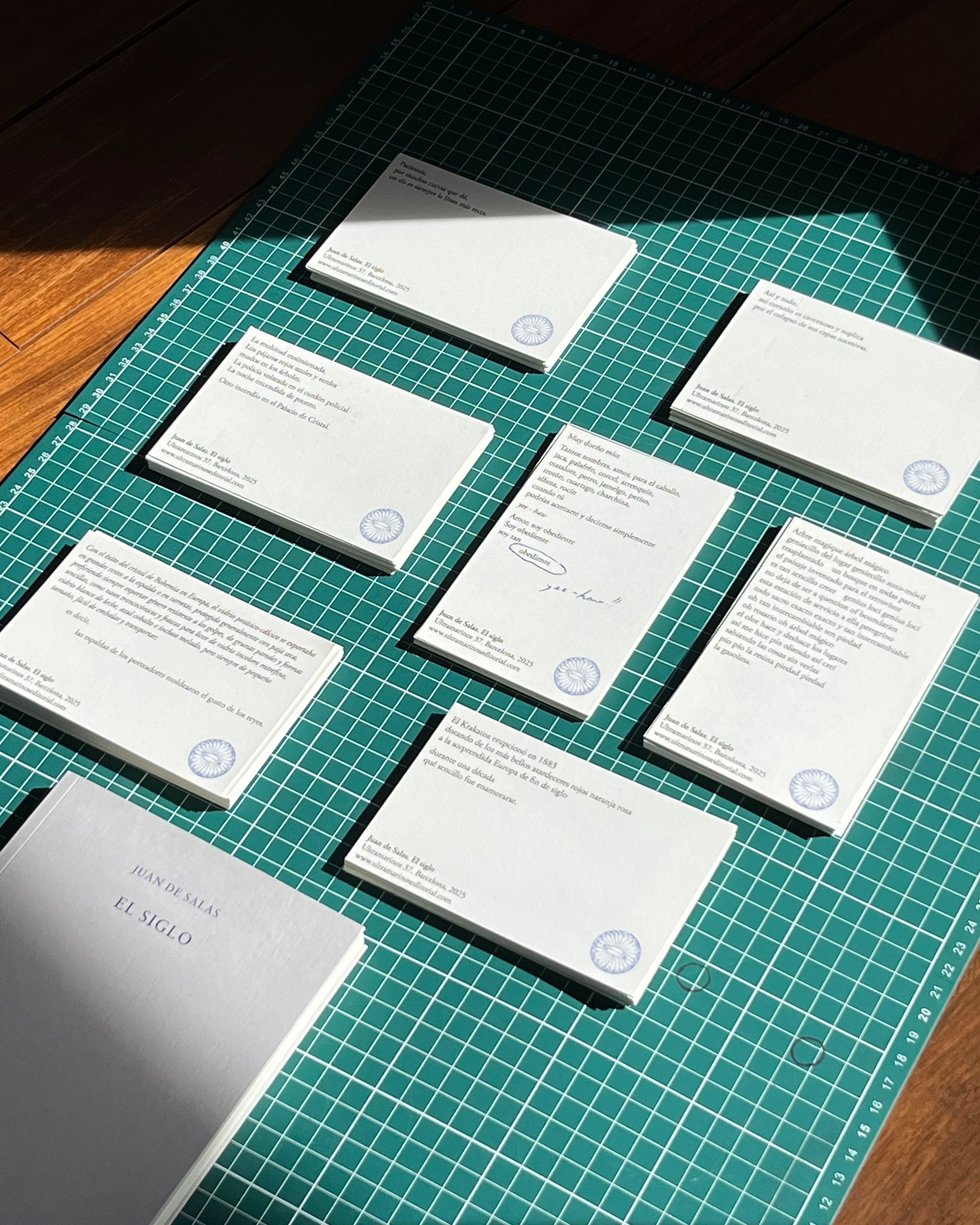 Editorial design for the postcards of the poetry book El Siglo, distributed during presentations across Spain. The project includes a set of postcards, one for each chapter, each featuring a poem with an accompanying illustrative visual.